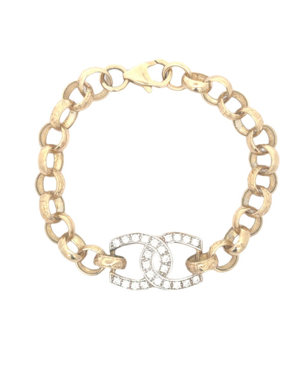 Children’s CZ Double Horseshoe Bracelet (7.5mm Links) in 9 Karat Yellow Gold. Free UK Delivery on orders over £500.