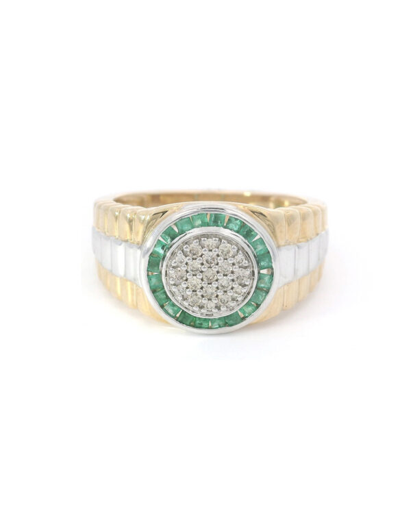 Presidential Round Diamond and Emerald Ring in 9 Karat Hallmarked Yellow Gold. Please contact us to order your size if you do not see it here. Free UK Delivery on orders over £500.