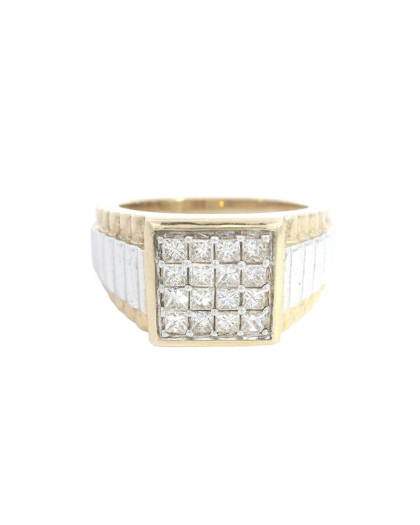 Presidential Square Diamond Ring in 9 Karat Yellow Gold.